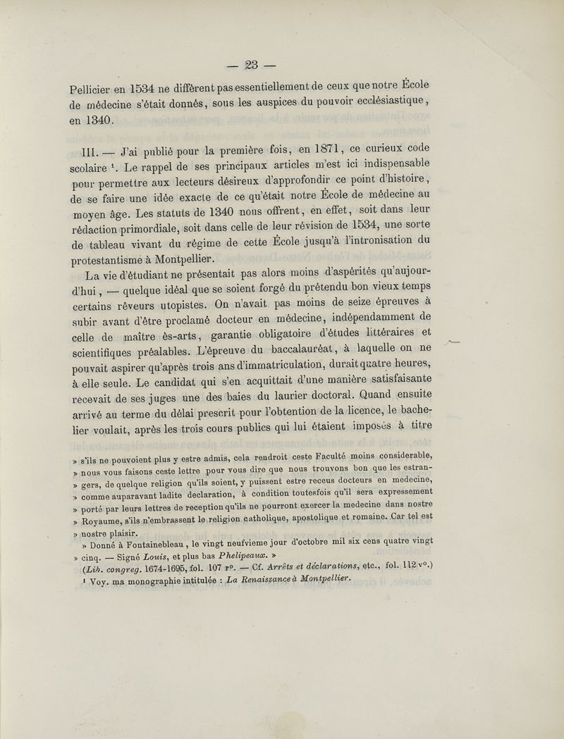 L'école de médecine de Montpellier - ses origines, sa constitution, son enseignement - étude historique d'après les documents originaux