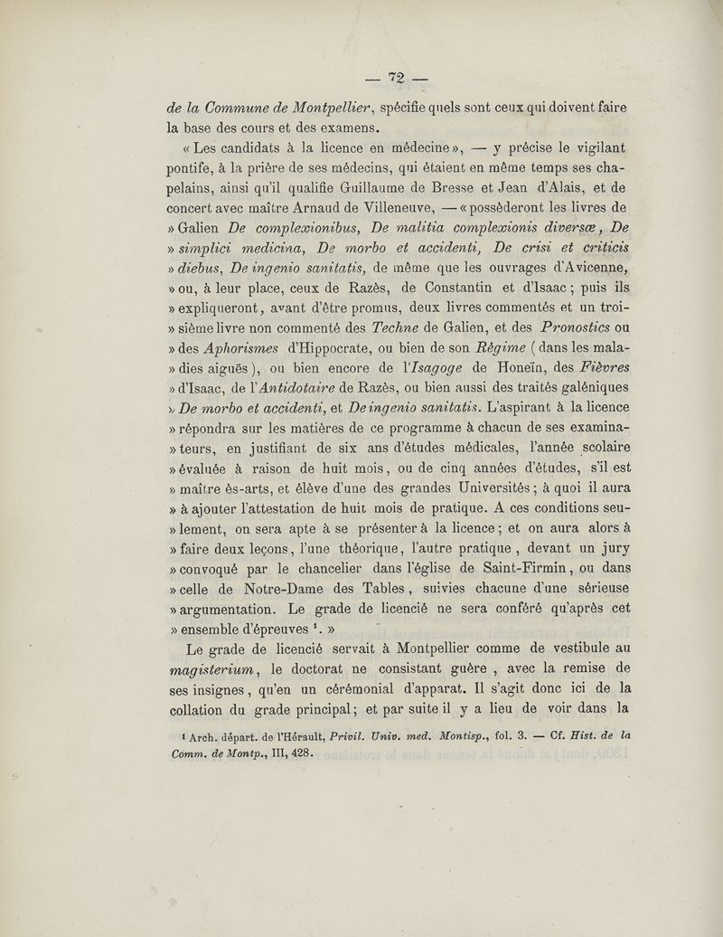L'école de médecine de Montpellier - ses origines, sa constitution, son enseignement - étude historique d'après les documents originaux