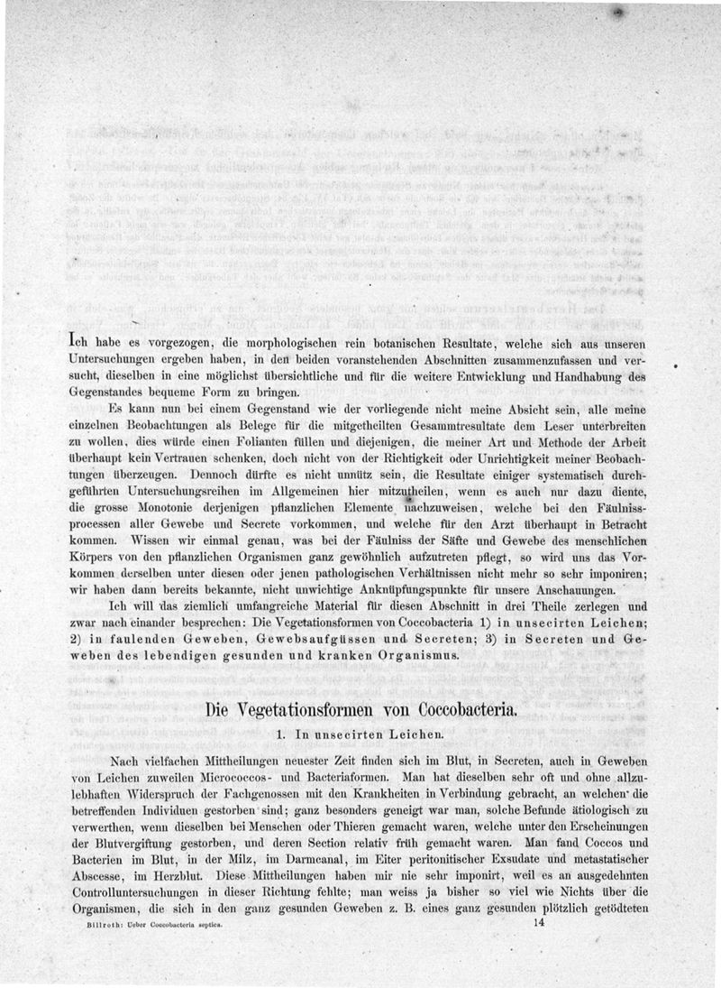 Untersuchungen über die vegetationsformen von coccobacteria septica und den antheil, welchen sie an der entstehung und verbreitung der accidentellen wundkrankheiten haben