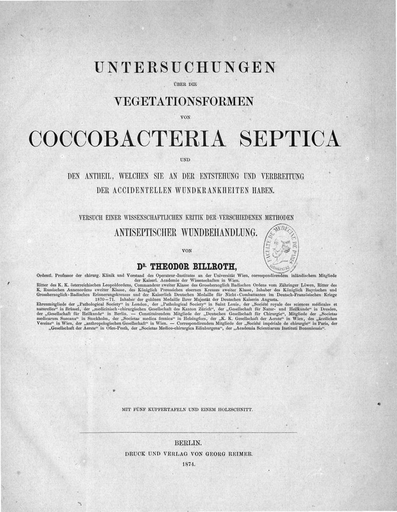 Untersuchungen über die vegetationsformen von coccobacteria septica und den antheil, welchen sie an der entstehung und verbreitung der accidentellen wundkrankheiten haben