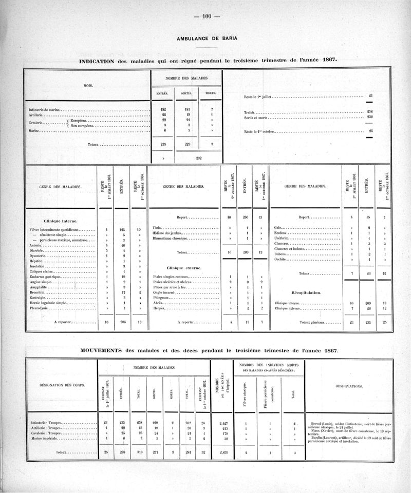 Cochinchine française, statistique médicale de 1863 à 1870