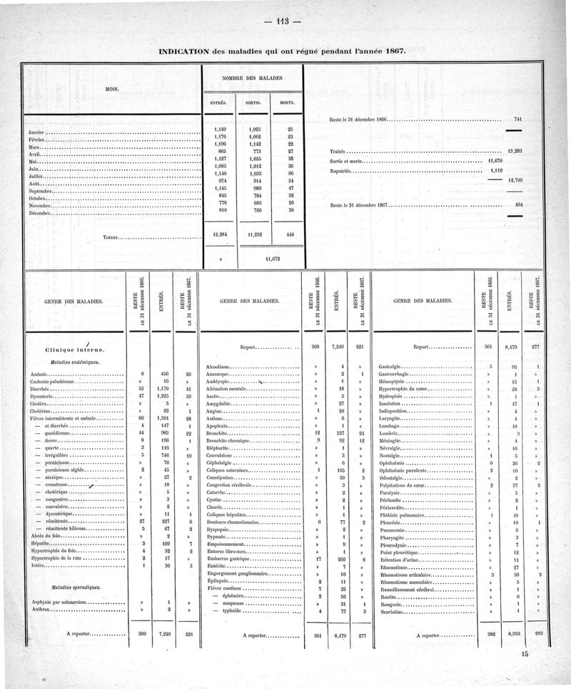 Cochinchine française, statistique médicale de 1863 à 1870