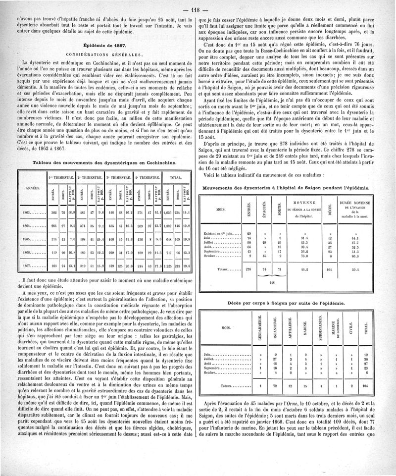 Cochinchine française, statistique médicale de 1863 à 1870
