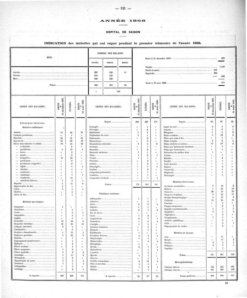 Cochinchine française, statistique médicale de 1863 à 1870