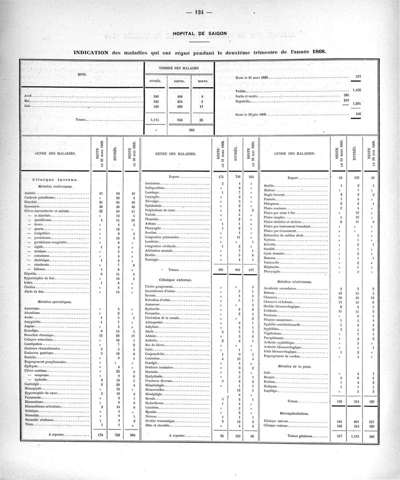 Cochinchine française, statistique médicale de 1863 à 1870