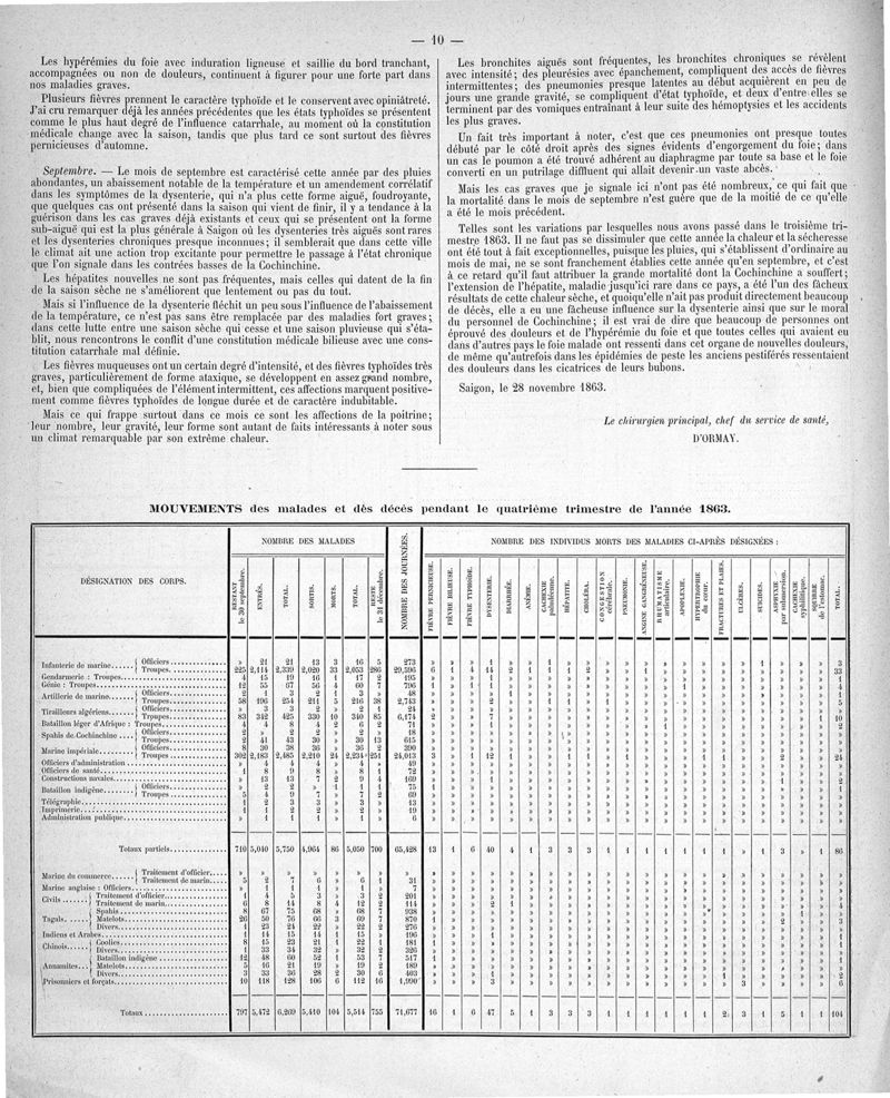Cochinchine française, statistique médicale de 1863 à 1870
