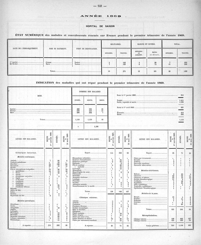 Cochinchine française, statistique médicale de 1863 à 1870