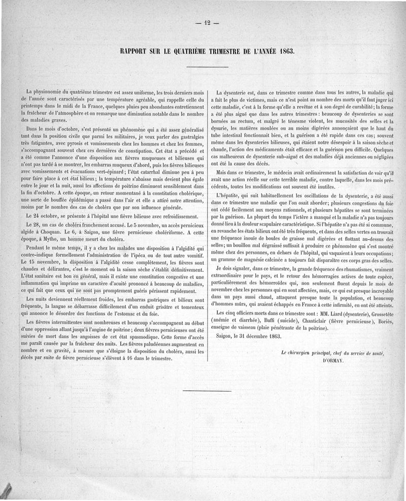 Cochinchine française, statistique médicale de 1863 à 1870