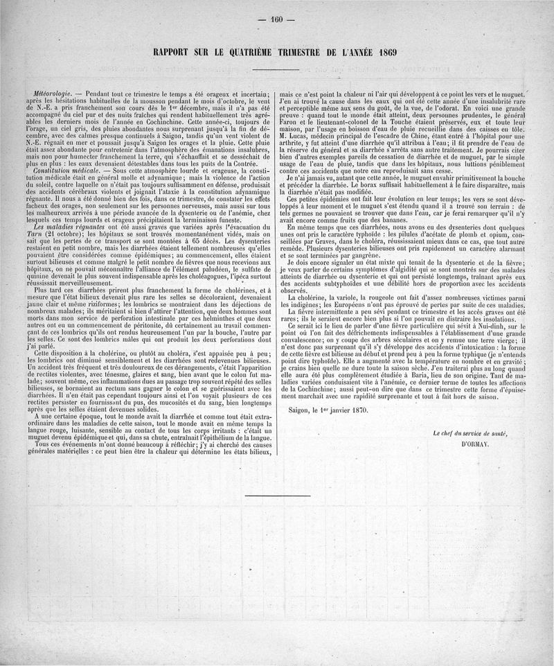 Cochinchine française, statistique médicale de 1863 à 1870