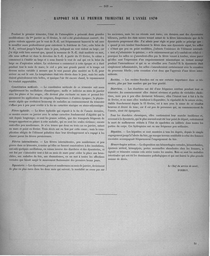Cochinchine française, statistique médicale de 1863 à 1870