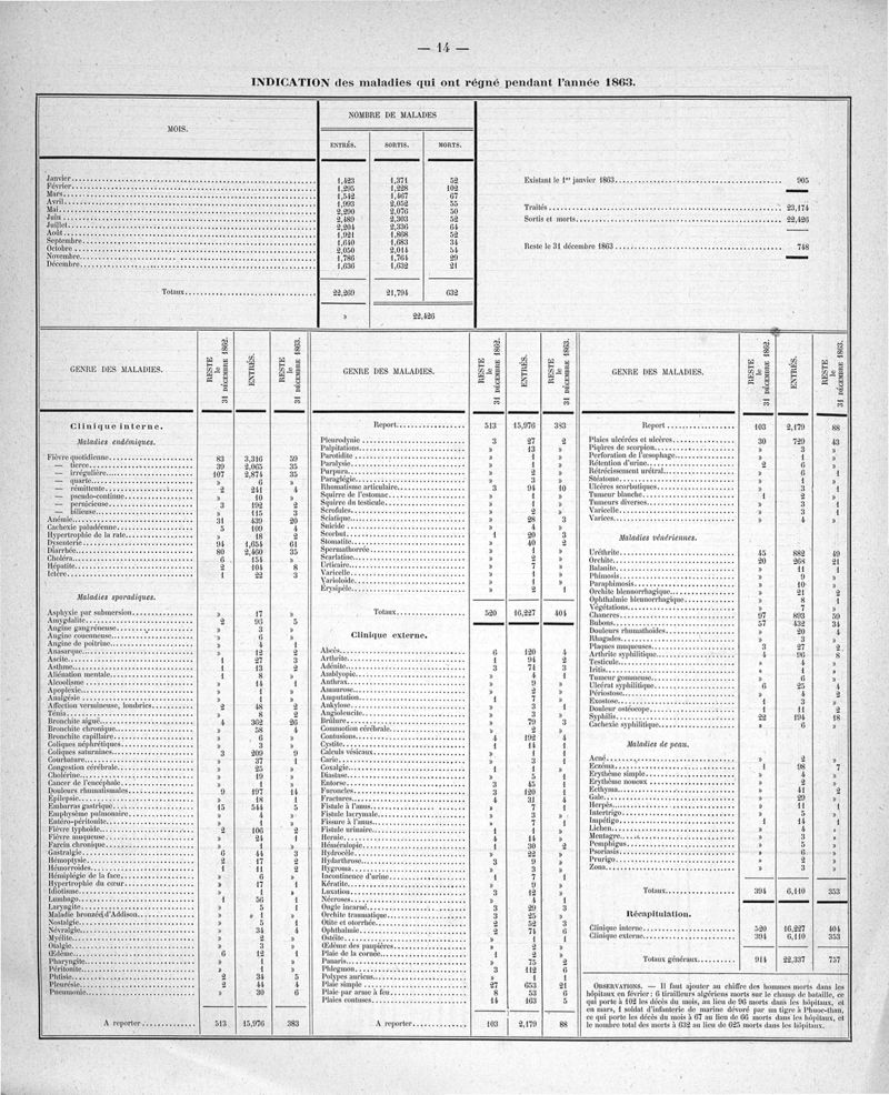 Cochinchine française, statistique médicale de 1863 à 1870
