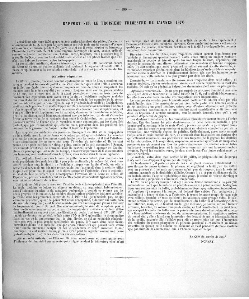 Cochinchine française, statistique médicale de 1863 à 1870