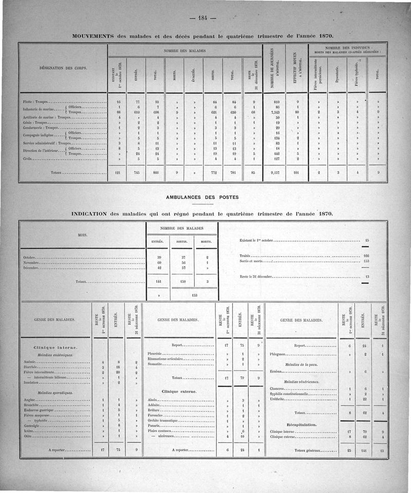 Cochinchine française, statistique médicale de 1863 à 1870