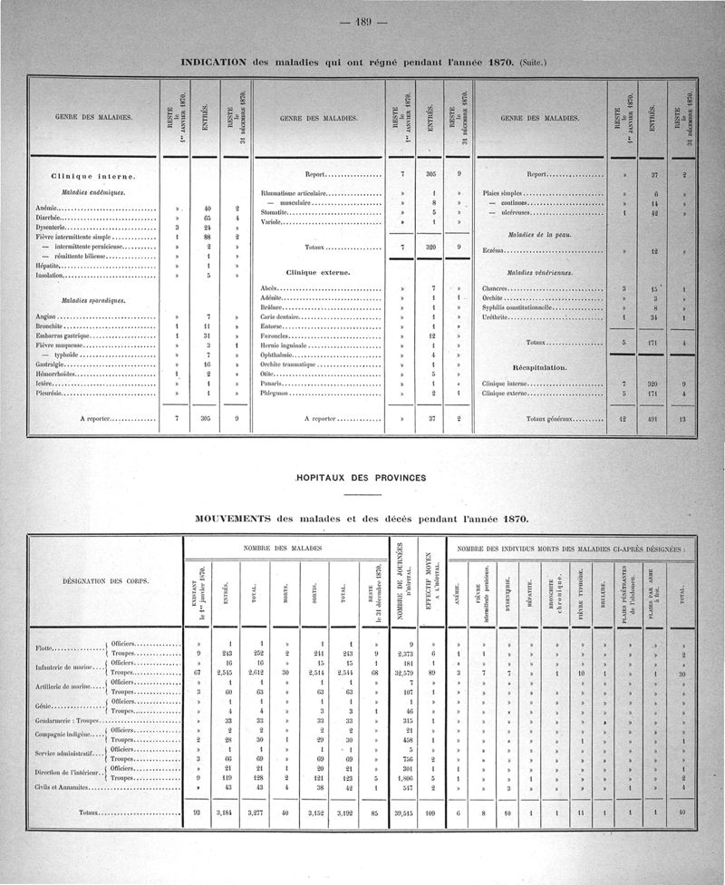 Cochinchine française, statistique médicale de 1863 à 1870