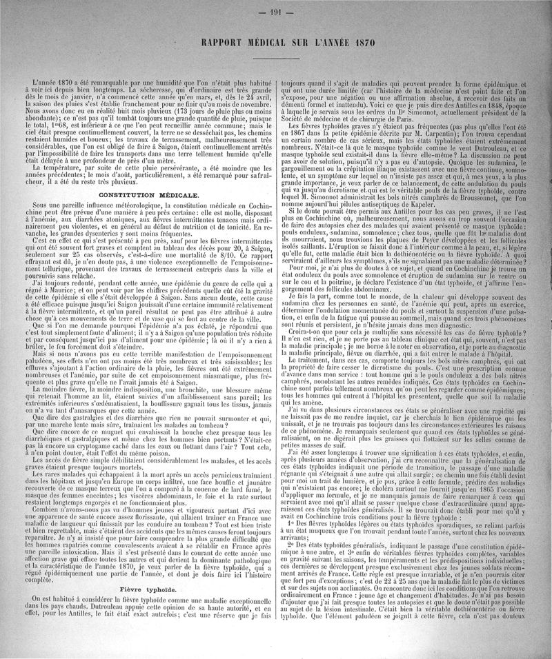 Cochinchine française, statistique médicale de 1863 à 1870