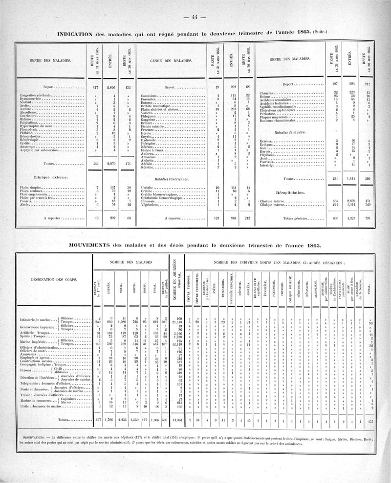 Cochinchine française, statistique médicale de 1863 à 1870