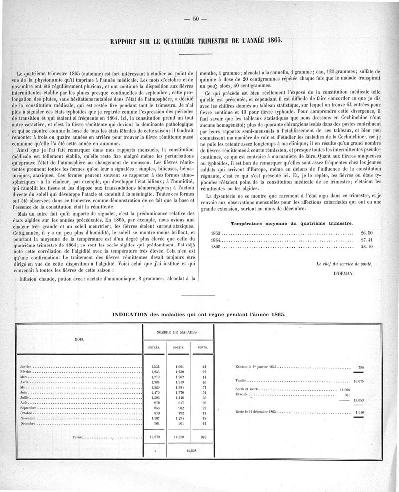 Cochinchine française, statistique médicale de 1863 à 1870