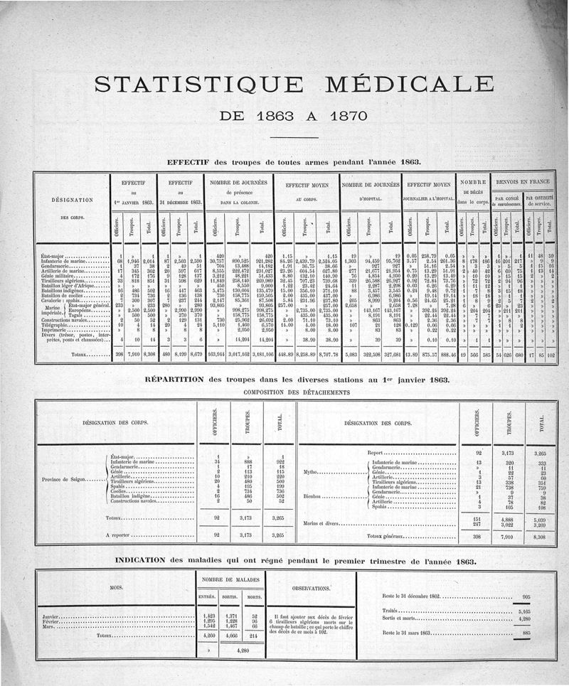 Cochinchine française, statistique médicale de 1863 à 1870
