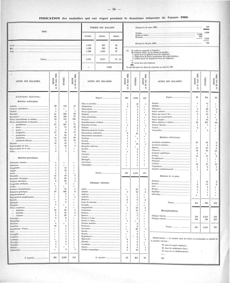 Cochinchine française, statistique médicale de 1863 à 1870