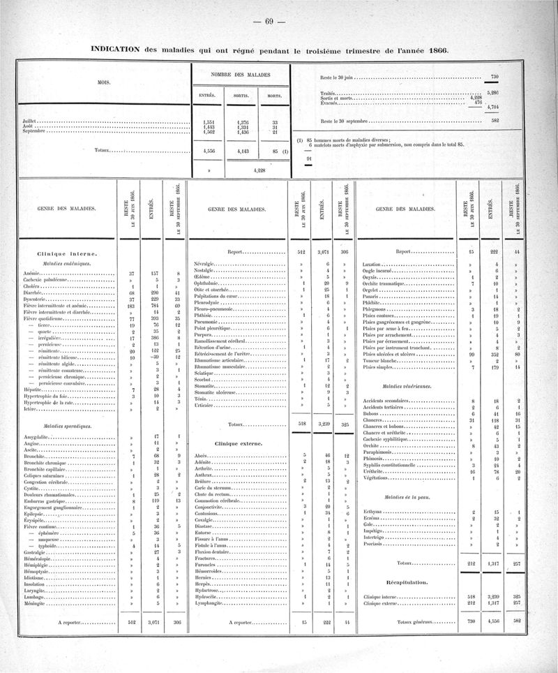 Cochinchine française, statistique médicale de 1863 à 1870