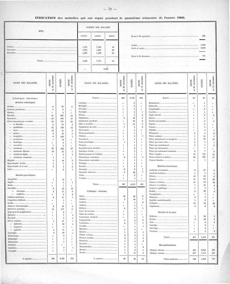 Cochinchine française, statistique médicale de 1863 à 1870