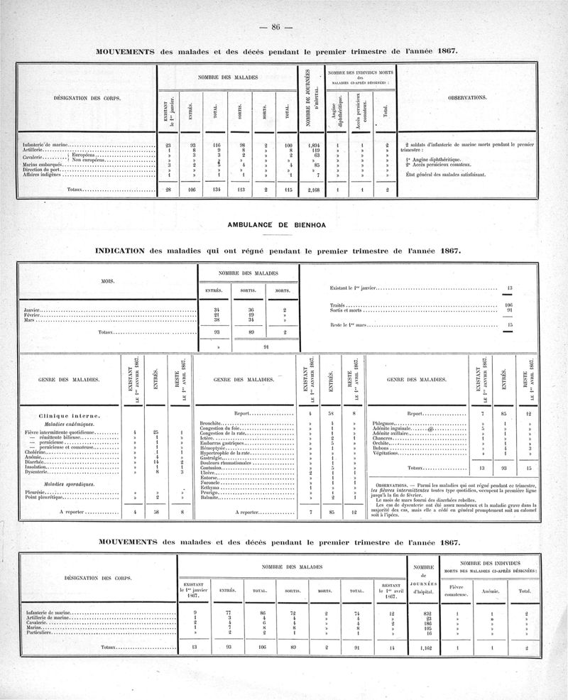 Cochinchine française, statistique médicale de 1863 à 1870