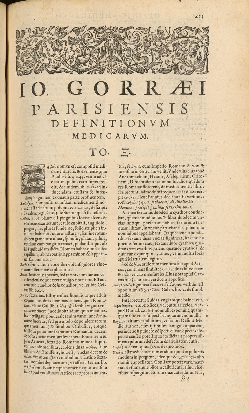 Joannis Gorraei... Opera. Definitionum medicarum libri XXIIII