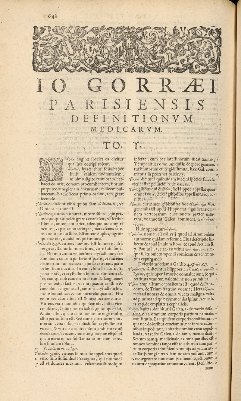 Joannis Gorraei... Opera. Definitionum medicarum libri XXIIII