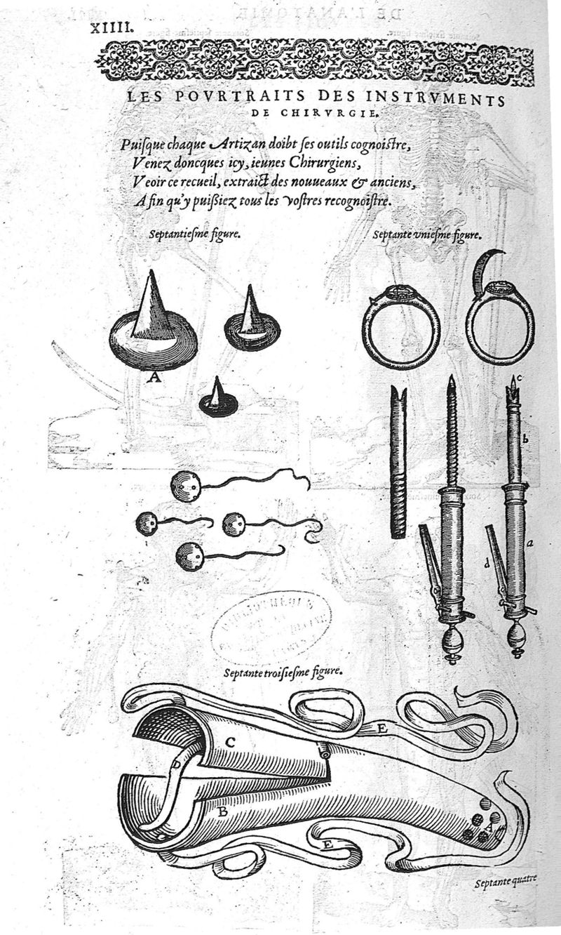 Les Oeuvres d’Ambroise Paré, conseiller et premier chirurgien du roy, divisées en vingt-sept livres : avec les figures et portraicts tant de l’Anatomie que des instruments de chirurgie et de plusieurs monstres : reveuz et augmentez par l’autheur pour la seconde Edition, Paris,