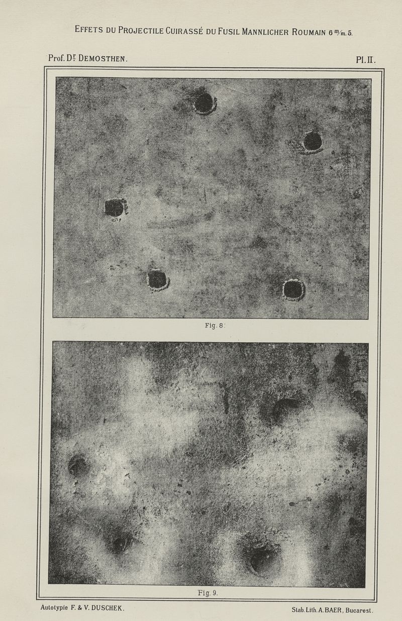 Etudes expérimentales sur l'action du projectile cuirassé du fusil Mannlicher : nouveau modèle roumain de 6 m/m5