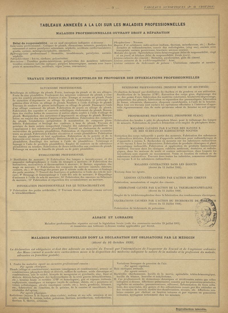Lois sociales (assistance, réparation, assurances), exercice de la médecine. Tableaux synoptiques du cours de la chaire d'assistance médico-sociale de la Faculté de médecine de Paris