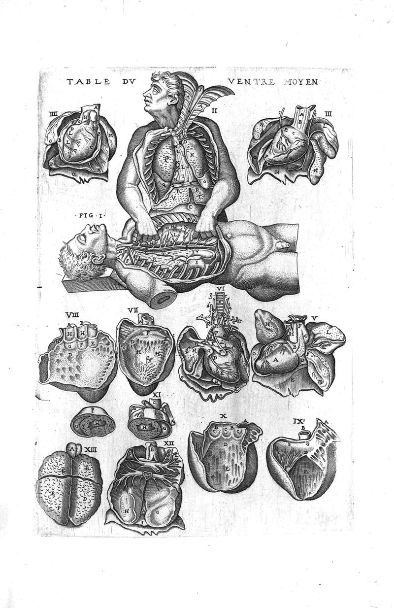 Tables anatomiques avec les pourtraicts et declaration d'iceulx ensemble un denombrement de cinq cens maladies diverses, au Roy par Jac. Guillemeau d’Orleans, Chirurgien du Roy et Juré a Paris, [suivi de] Anatomie universelle du corps humain en tables methodiques. Avec les portraicts et figures de chacune des parties et declaration d’icelles. Divisee en sept livres ensemble un denombrement de cinq cens maladies diverses. Au Roy par Jaques Guillemeau, chirurgien du roy, et jure a Paris,