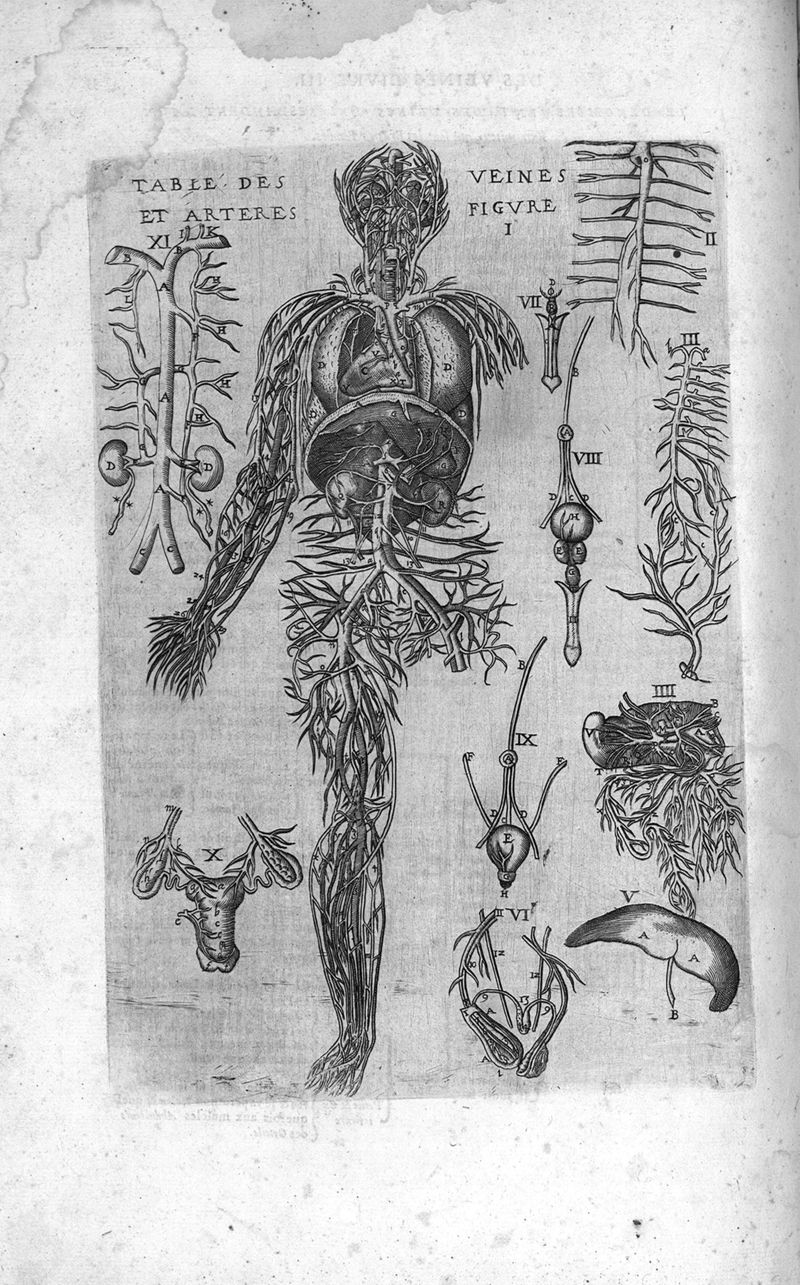 Tables anatomiques avec les pourtraicts et declaration d'iceulx ensemble un denombrement de cinq cens maladies diverses, au Roy par Jac. Guillemeau d’Orleans, Chirurgien du Roy et Juré a Paris, [suivi de] Anatomie universelle du corps humain en tables methodiques. Avec les portraicts et figures de chacune des parties et declaration d’icelles. Divisee en sept livres ensemble un denombrement de cinq cens maladies diverses. Au Roy par Jaques Guillemeau, chirurgien du roy, et jure a Paris,