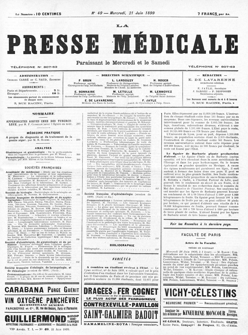URL pérenne de cette page : https://www.biusante.parisdescartes.fr/histmed/medica/page?100000x1899x01xannexes&p=281