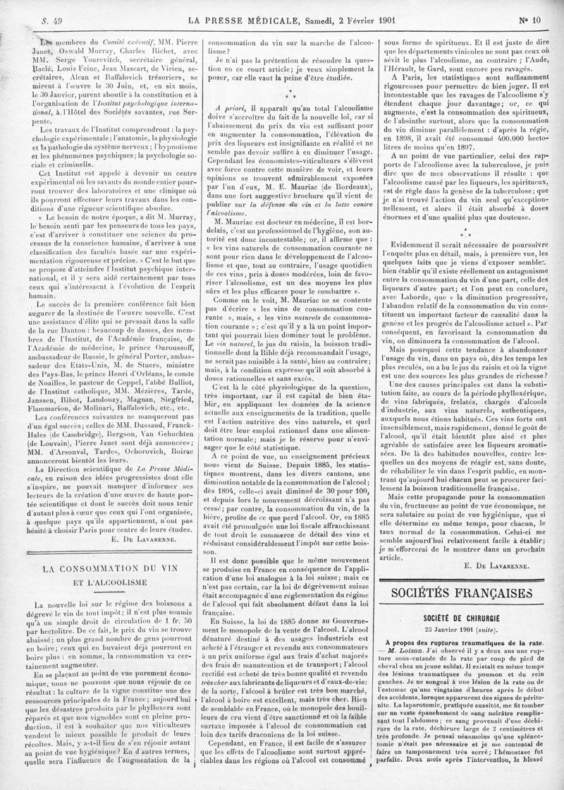 1901, semestre01, Volume d'annexes. -