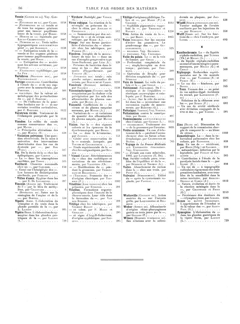 1902, Volume de tables. -