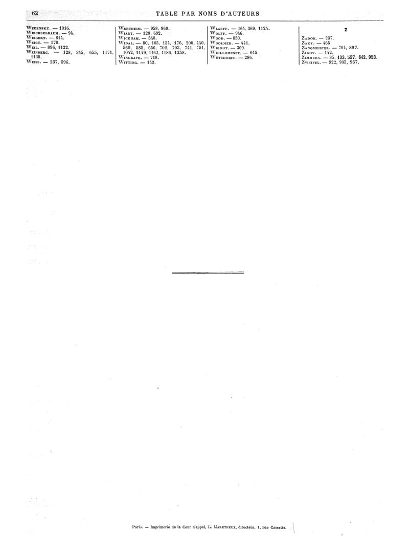 1902, Volume de tables. -