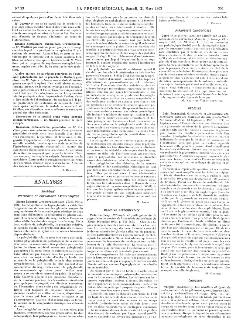 1903, Articles originaux. -