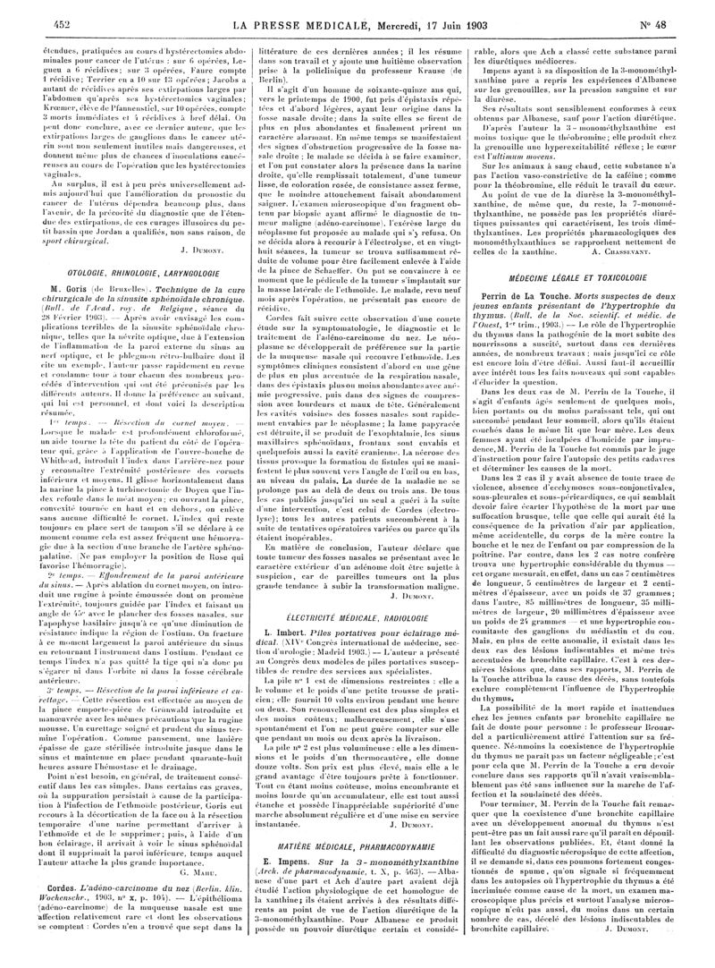 1903, Articles originaux. -