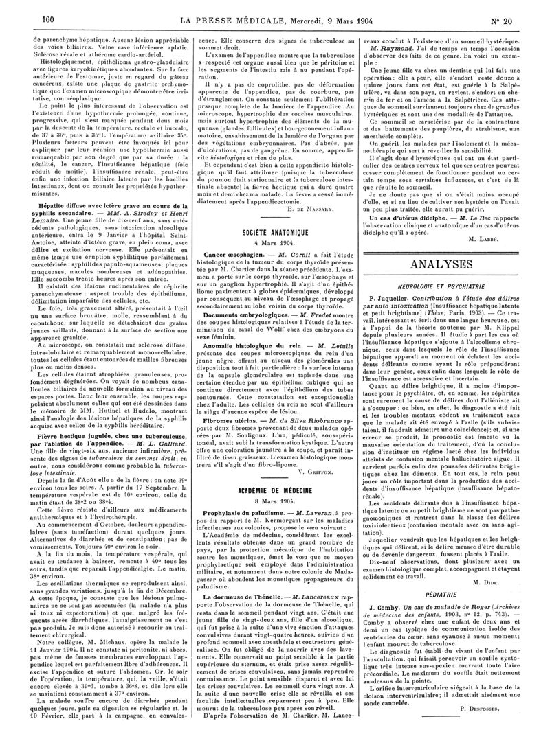 1904, Articles originaux. -