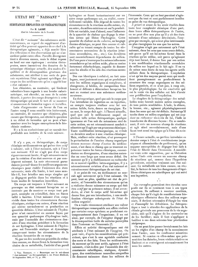 1904, Articles originaux. -