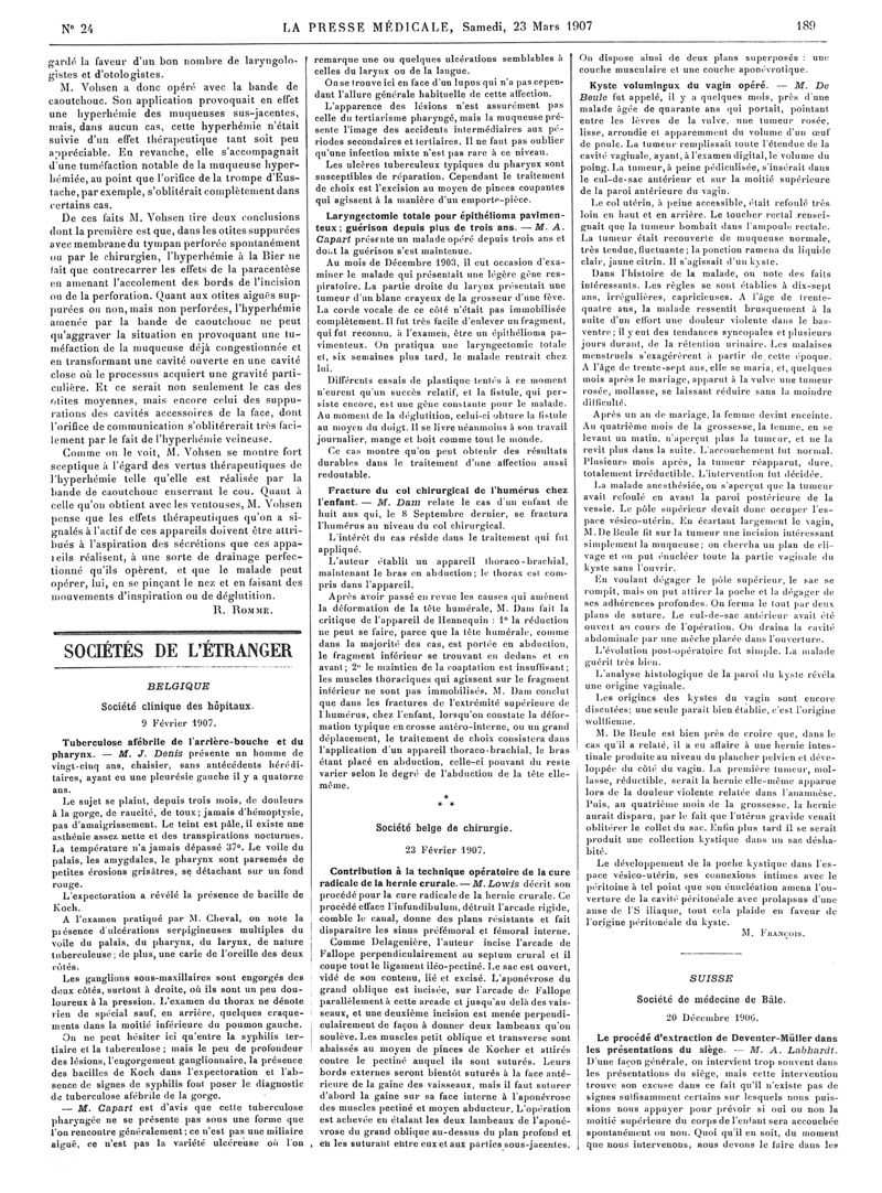 1907, Articles originaux. -