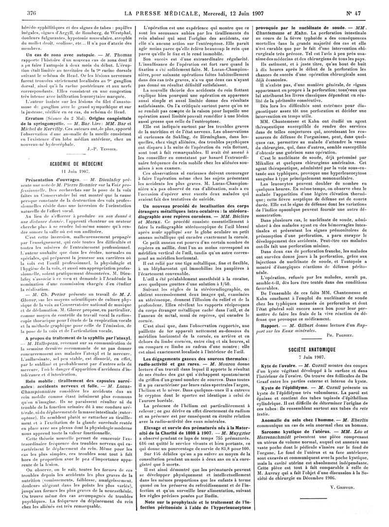 1907, Articles originaux. -