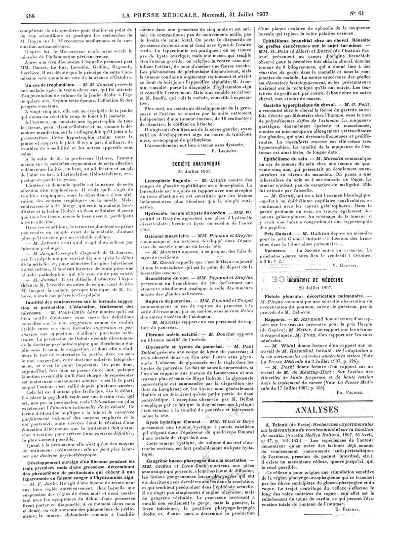 1907, Articles originaux. -