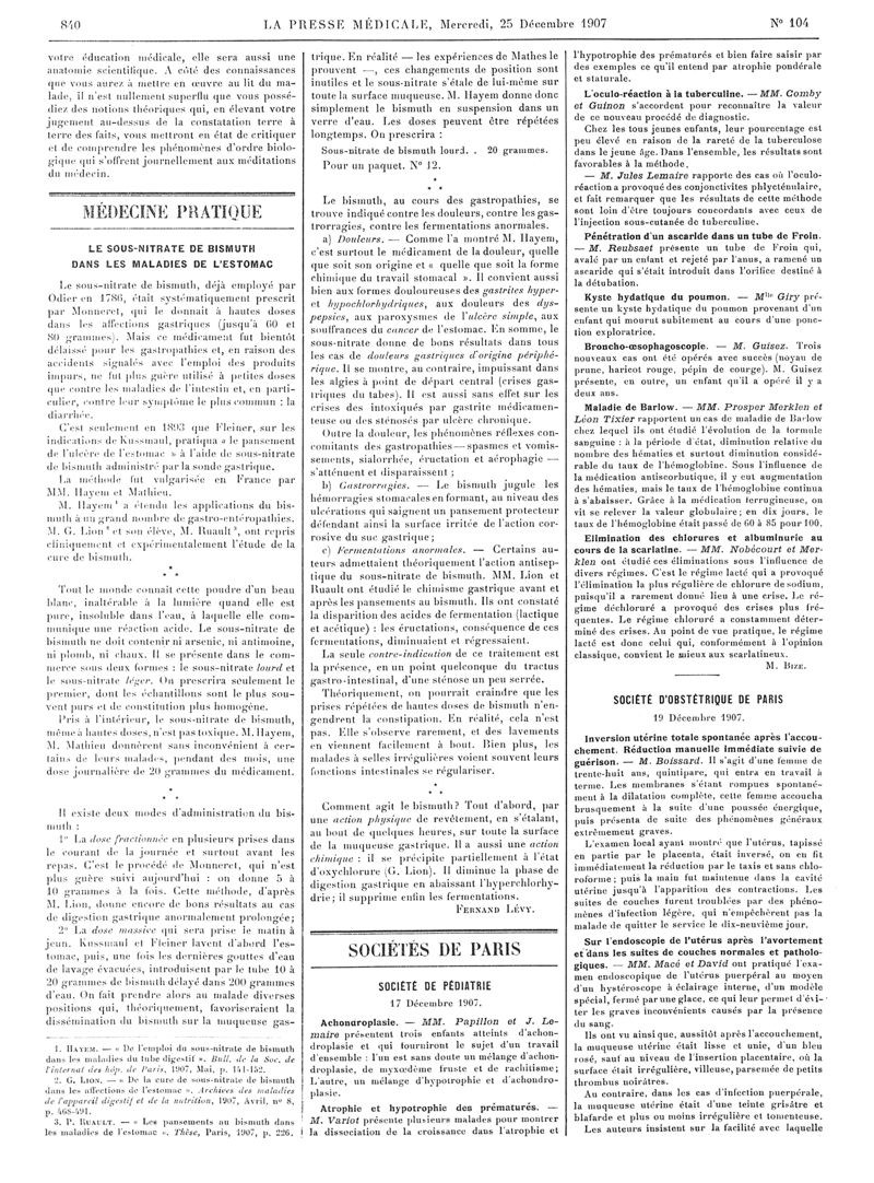 1907, Articles originaux. -