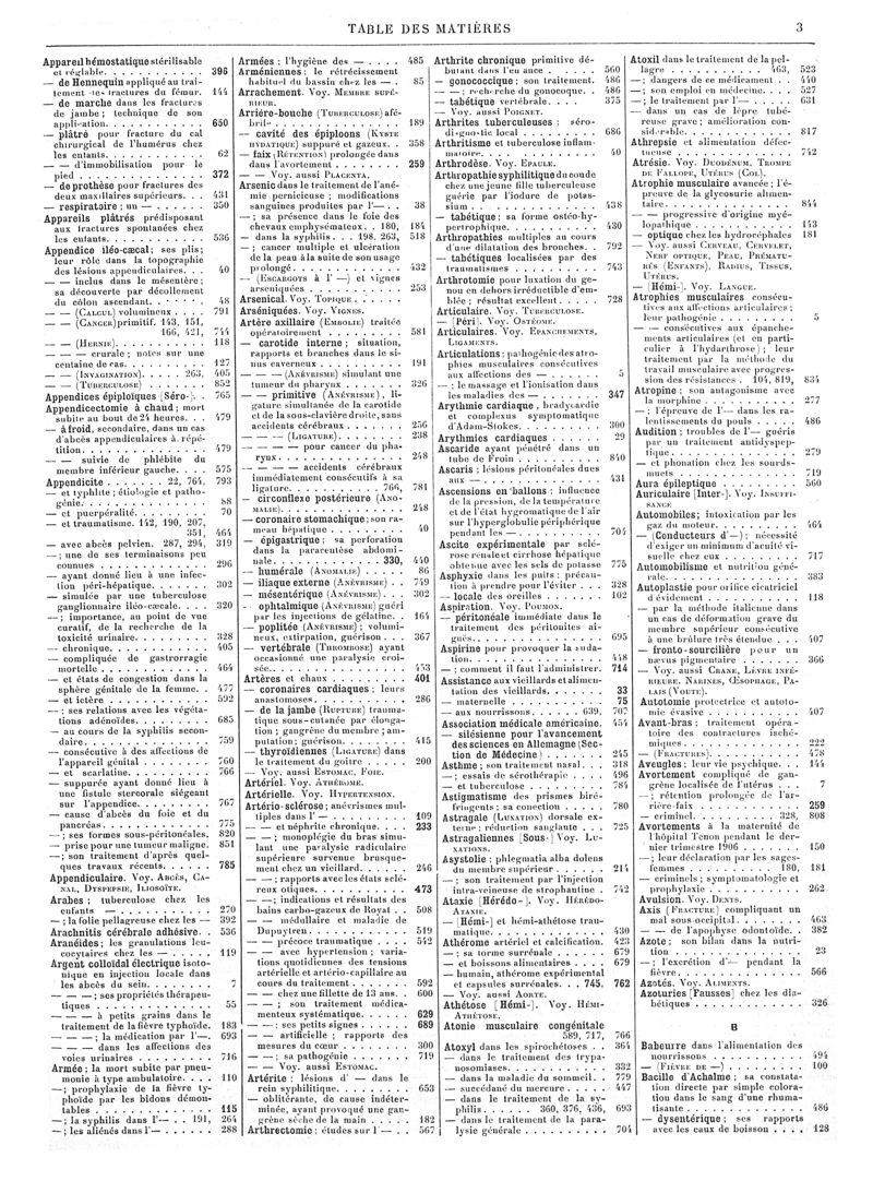 1907, Volume de tables. -