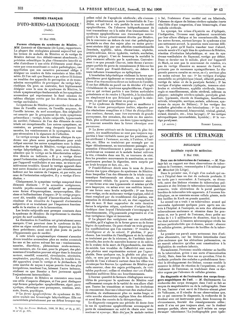 1908, Articles originaux. -