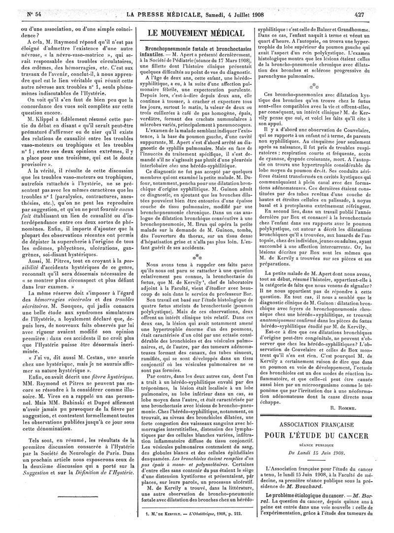 1908, Articles originaux. -