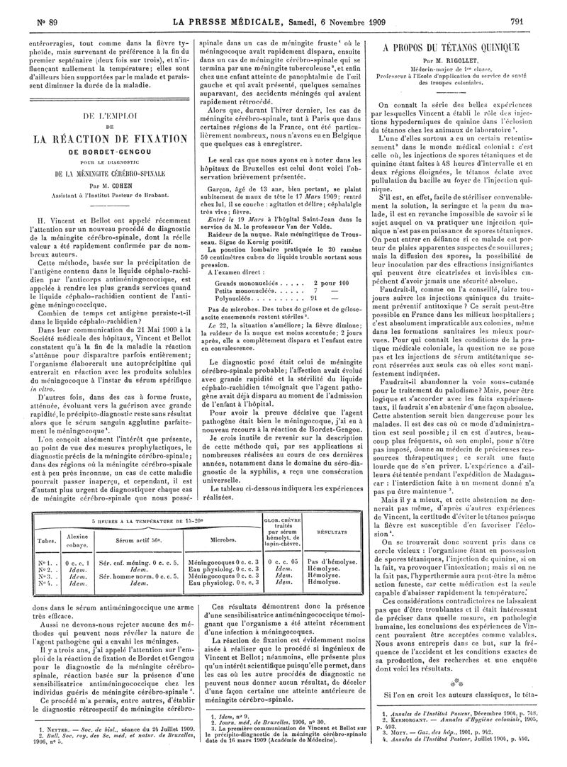 1909, Articles originaux. -