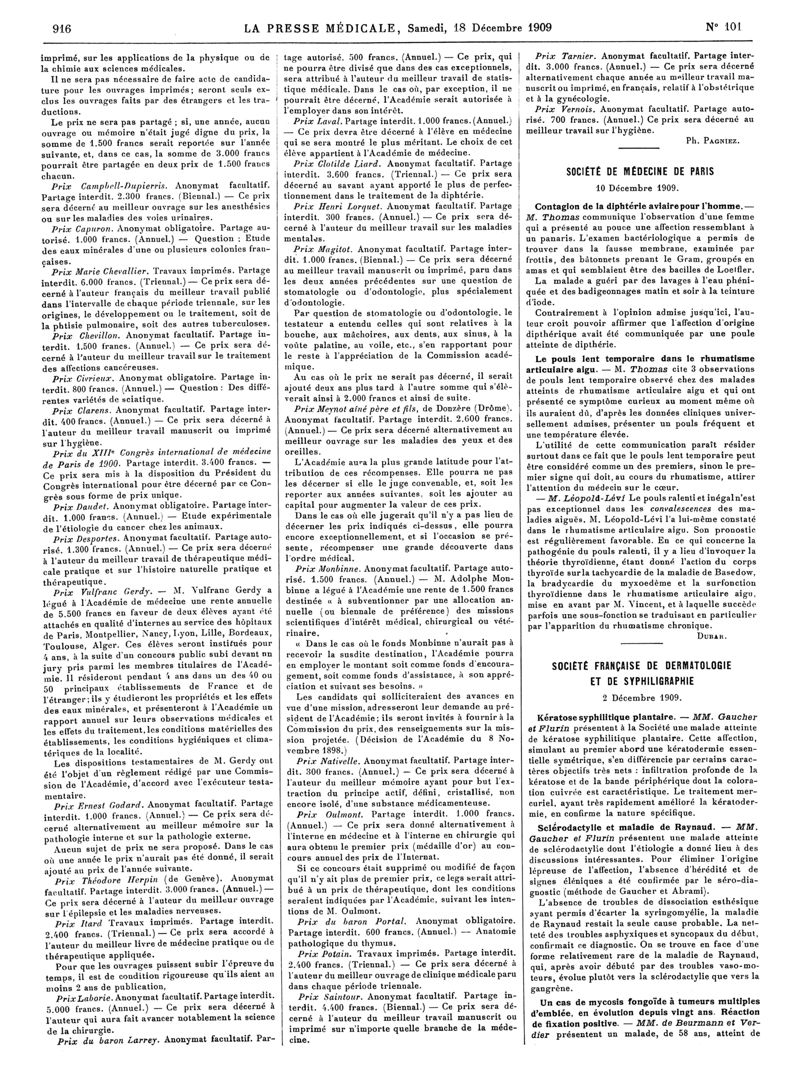 1909, Articles originaux. -